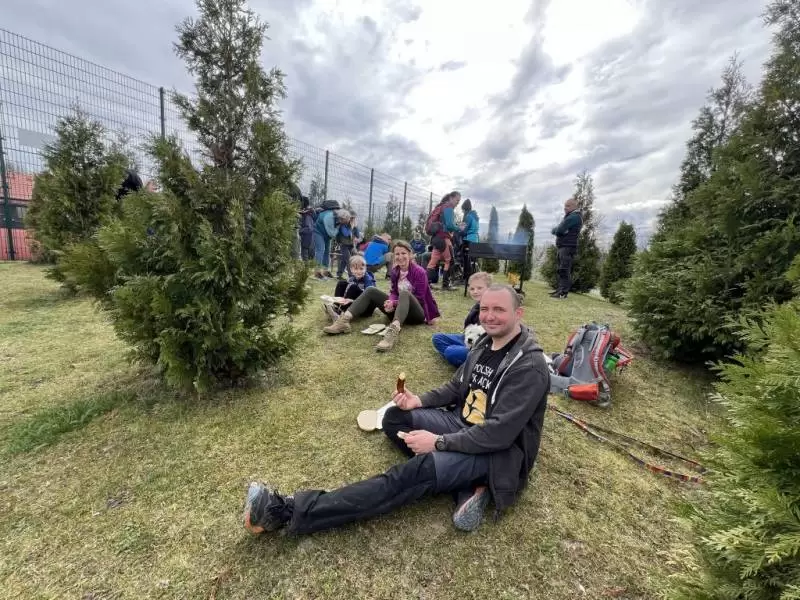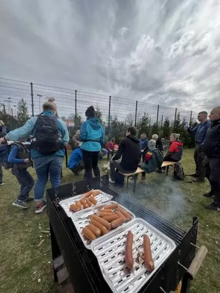 Po emocjonującym marszu na uczestników czekała dodatkowa niespodzianka – wspólne ognisko i pieczone kiełbaski! Zapach dymu, ciepło płomieni i radosne rozmowy sprawiły, że finał imprezy był pełen przyjacielskiej atmosfery. To idealne zakończenie aktywnego dnia, pozwalające na chwilę odpoczynku i wymianę wrażeń.