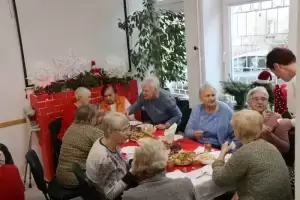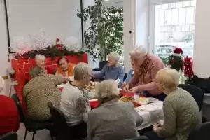 Podopieczni Dziennego Domu Senior + zebrali się przy stole, pełnym dekoracji świątecznych. Każdy z nich miał możliwość podzielenia się swoimi wspomnieniami i opowiedzenia historii ze swojej młodości. Były wzruszenia, ale także wiele radości i śmiechu. Śpiewali kolędy i rozmawiali o pięknych świątecznych tradycjach.