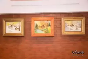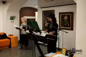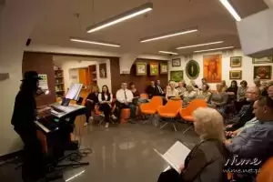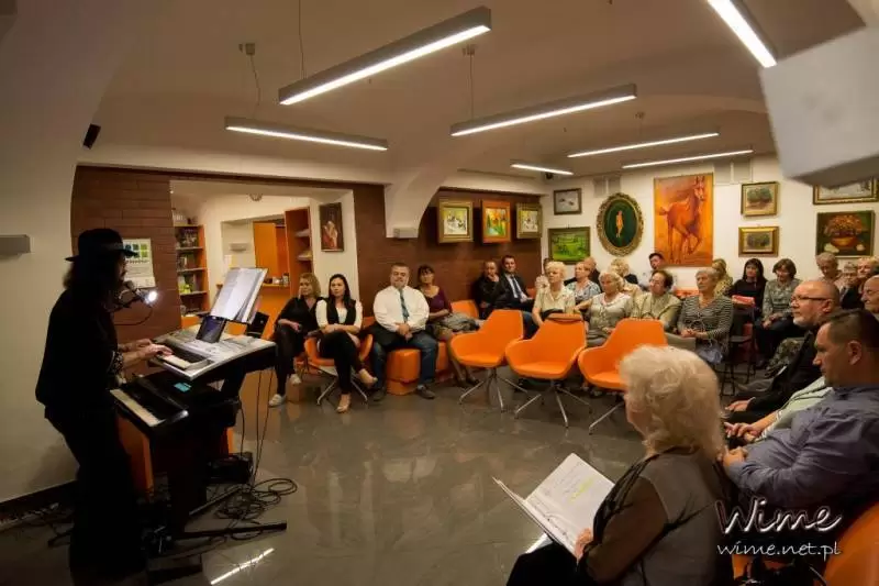 Występ zakończył się poczęstunkiem przygotowanym przez organizatora i losowaniem jednego z obrazów artysty wśród publiczności.