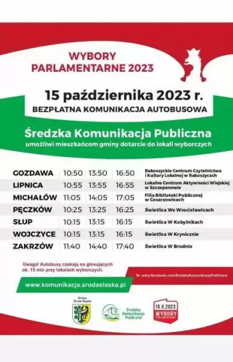 Średzka Komunikacja Publiczna umożliwi mieszkańcom gminy dotarcie do lokali wyborczych na wybory parlamentarne w dniu 15.10.2023 r.