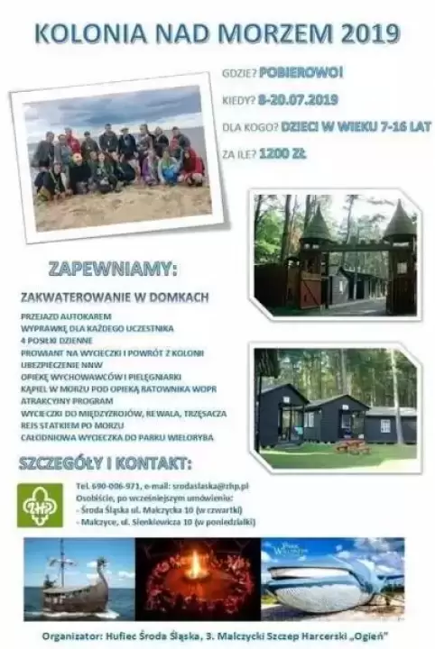 Hufiec ZHP w Środzie Śląskiej organizuje kolonię nad morzem w Pobierowie. Koszt wyjazdu - 1.200 zł.