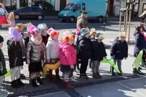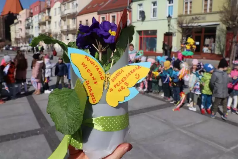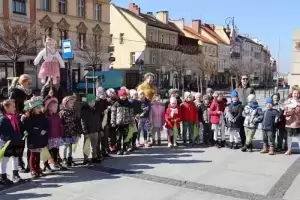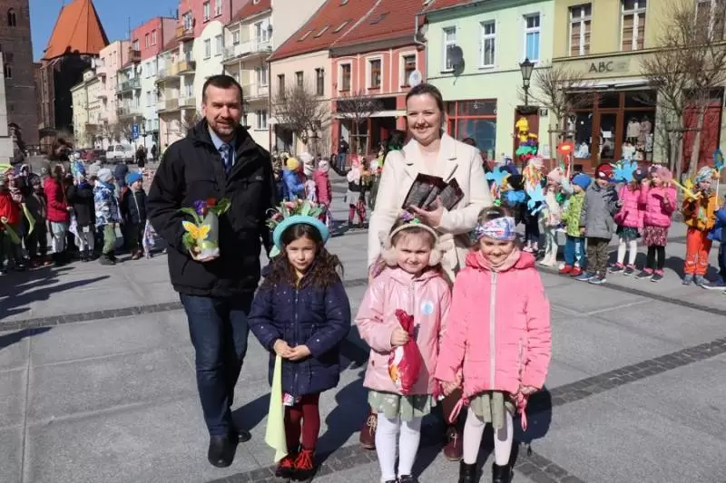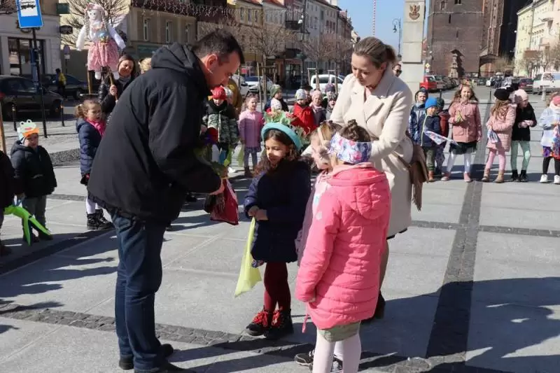 W pierwszy dzień wiosny z wizytą na Rynek Dolny przyszły przedszkolaki z Przedszkola nr 3 w Środzie Śląskiej. Zaśpiewały piosenkę o wiośnie i przyniosły prezent symbolizujący nadejście nowej pory roku.