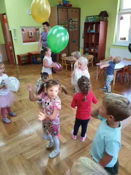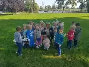 Były to: Akcja Sprzątanie Świata, podczas której panie nauczycielki kształtowały nawyk dbania o czystość wokół nas, nie tylko w tym jednym dniu w roku. Dzień Przedszkolaka, spędzony na różnych grach, zabawach, zawodach sportowych i na świeżym powietrzu oraz Dzień Spadającego Liścia, w którym dzieci witały pierwszy dzień kalendarzowej jesieni. Kolorowały i ozdabiały listki, poznawały dary jesieni, śpiewały i tańczyły do piosenek o tematyce jesiennej.