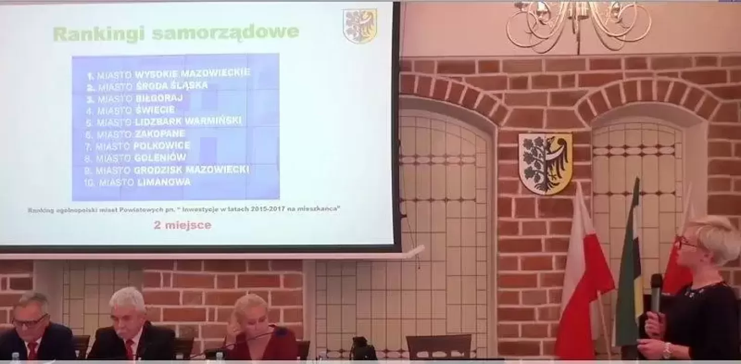 W ramach prezentacji Raportu o stanie gminy za 2018 rok na sesji absolutoryjnej Rady Miejskiej w dniu 30 maja br. inspektor Wydziału Organizacyjnego zaprezentowała pozycje i sukcesy Gminy Środa Śląska w ogólnopolskich i regionalnych rankingach samorządowych opublikowanych 2018 roku.