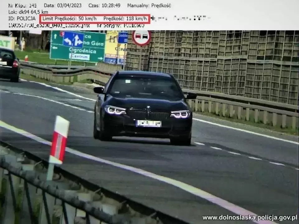 - Wciąż jedną z głównych przyczyn wypadków drogowych jest nadmierna prędkość. W najgorszym razie niestosowanie się do ograniczeń prędkości może doprowadzić do kolizji, czy właśnie wypadku, a w najlepszym do spotkania z mundurowymi - podkreśla mł. asp. Paweł Noga z KWP we Wrocławiu. - Tak jak to było na drodze krajowej numer 94 po godzinie 10.00, gdzie mundurowi z drogówki zauważyli dynamicznie przemieszczającego się kierującego osobowym BMW. Policjanci, dysponując ręcznym miernikiem, dokonali pomiaru prędkości kierującego. Na wyświetlaczu urządzenia pokazała się wartość ponad dwukrotnie wyższa niż dozwolona w tym miejscu. 29-latek na ograniczeniu do 50 km/h pędził 118 kilometrów.