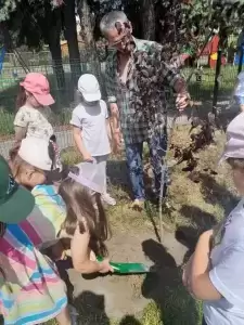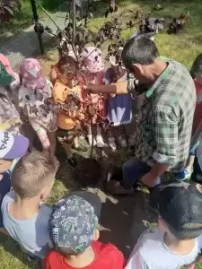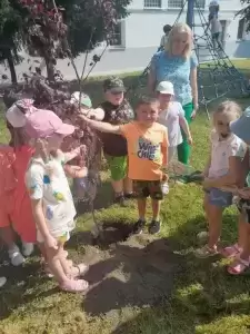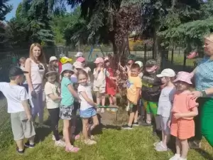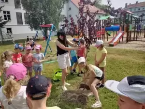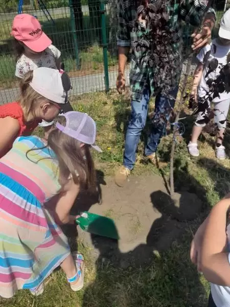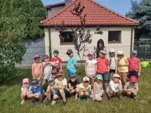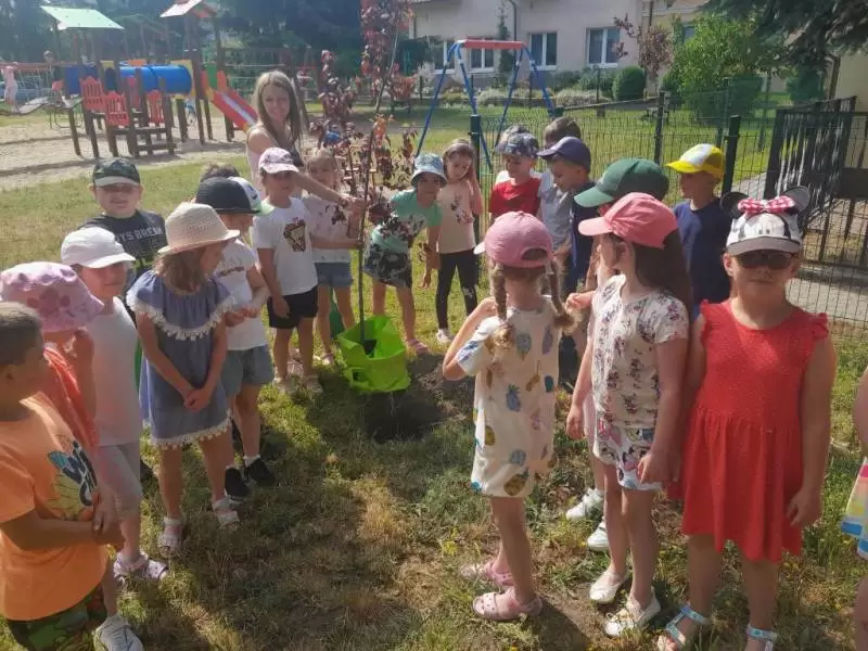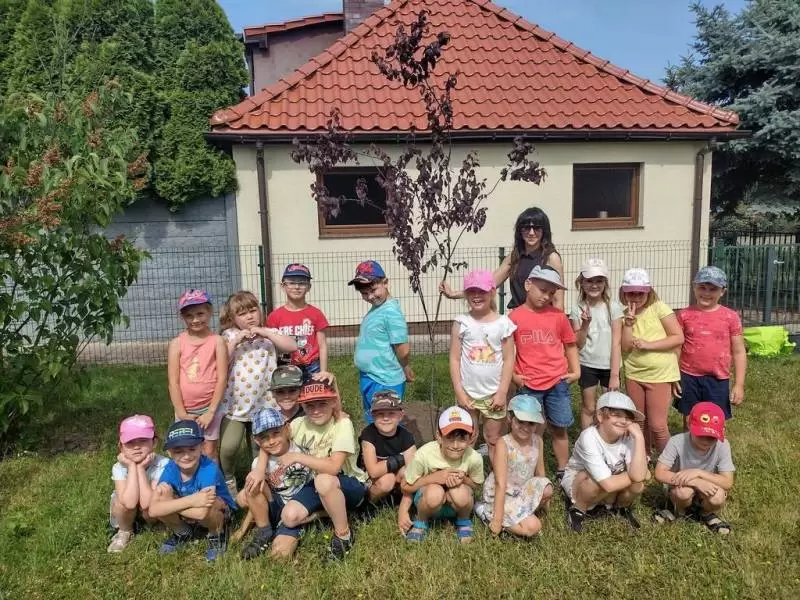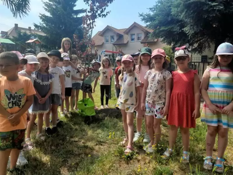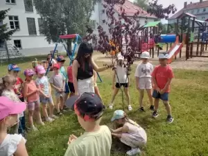 I tak nasze podwórko zostało wzbogacone pięknymi i pożytecznymi drzewami: „kotkowym” i „motylkowym”, w cieniu których za jakiś czas będą mogły w słoneczne, upalne dni schronić się kolejne grupy przedszkolaków. Mamy także nadzieję, że nasi przyszli absolwenci czasami nas odwiedzą i zobaczą jak posadzone przez nich rośliny wzrastają i upiększają teren wokół budynku przedszkola.