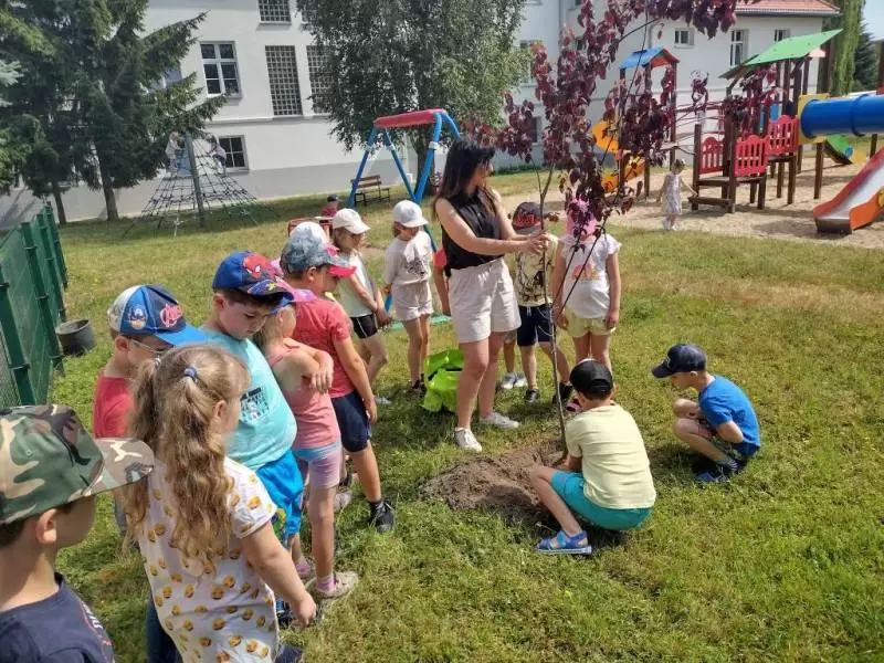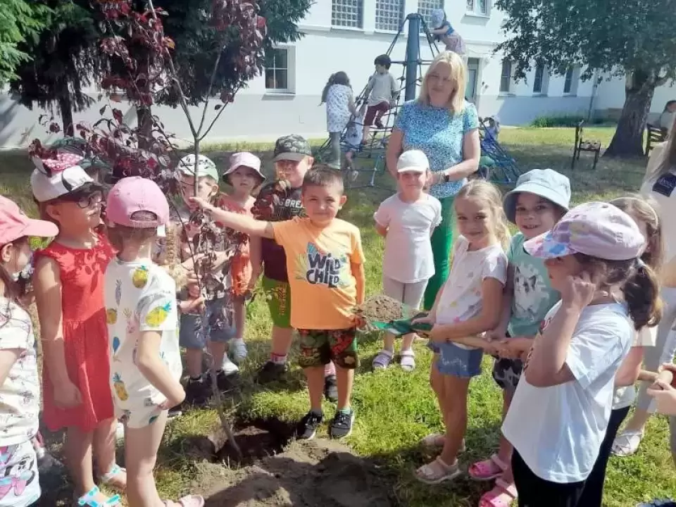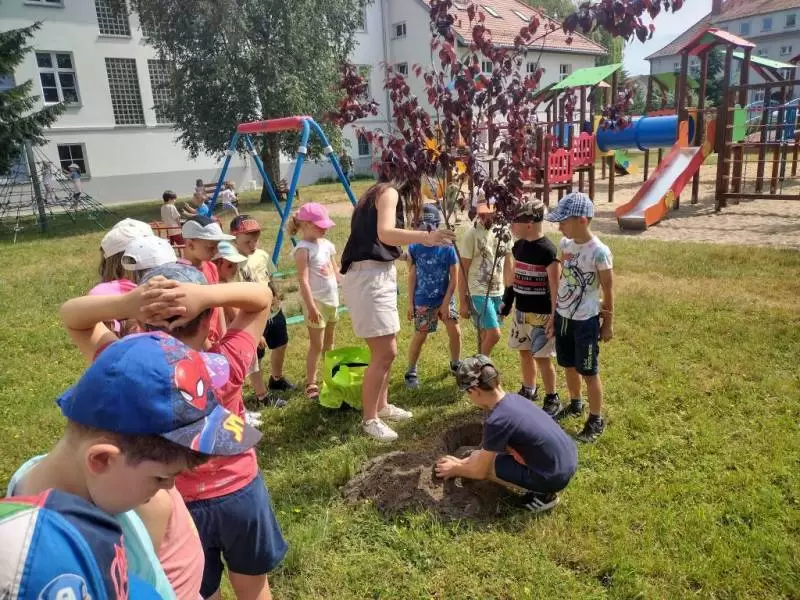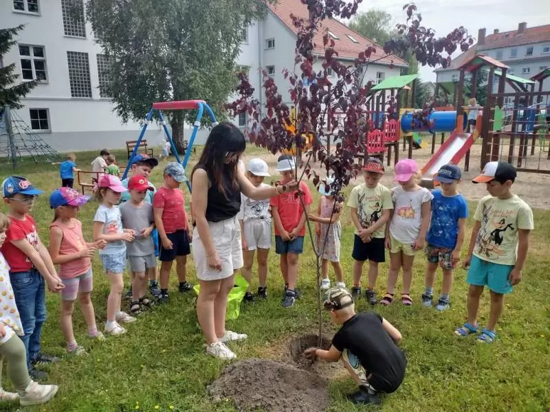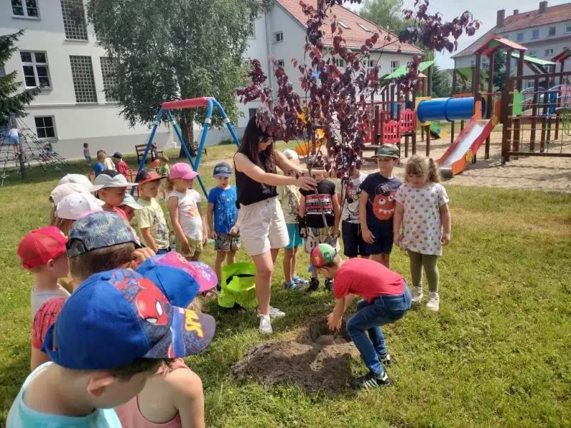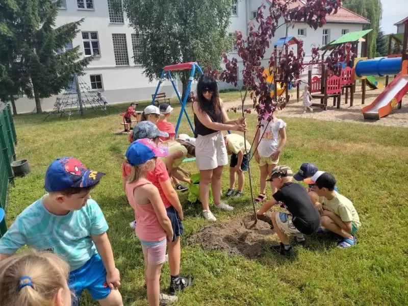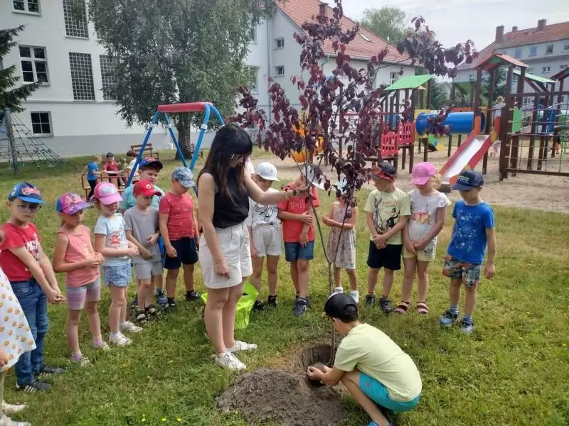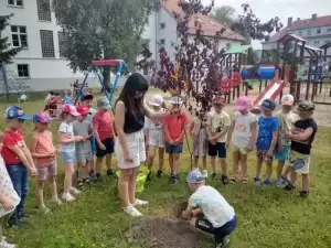 Starszaki z Przedszkola Publicznego nr 1 w Środzie Śląskiej sadzą pamiątkowe drzewa