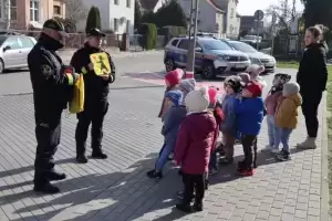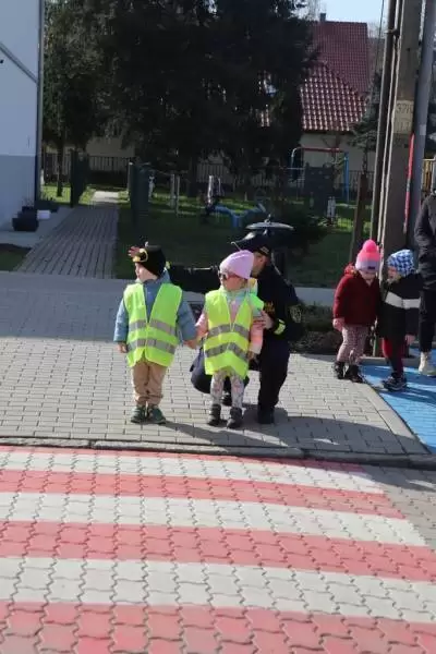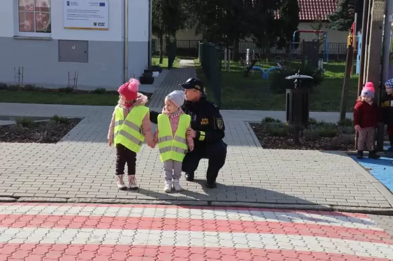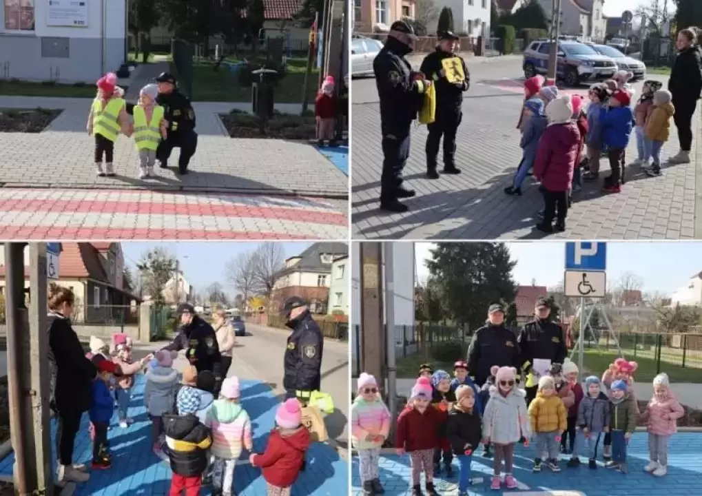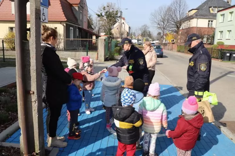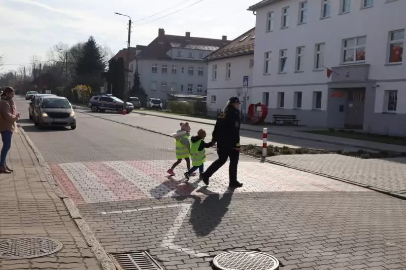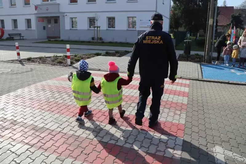 Podczas zajęć funkcjonariusze Straży Miejskiej w Środzie Śląskiej uczyli najmłodszych, jak prawidłowo korzystać z przejścia dla pieszych, kiedy należy zatrzymać się i jak sprawdzić, czy na drodze nie zbliża się pojazd. Dzieci miały okazję praktycznie wyćwiczyć bezpieczne przechodzenie przez jezdnię, a także odpowiedzieć na pytania dotyczące zasad ruchu drogowego.