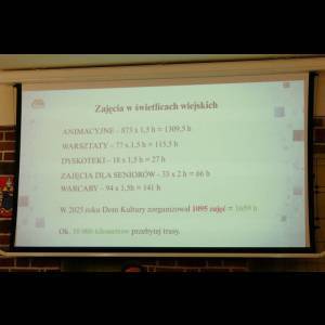 W formie prezentacji dyrektorzy Domu Kultury oraz Biblioteki Publicznej przedstawili sprawozdania z działalności swoich jednostek za 2025 rok. Miniony rok obfitował w liczne wydarzenia kulturalne, edukacyjne i integrujące mieszkańców, a zaprezentowane plany pokazują, że 2026 rok zapowiada się jeszcze ciekawiej i bogaciej w ofertę kulturalną dla mieszkańców gminy.