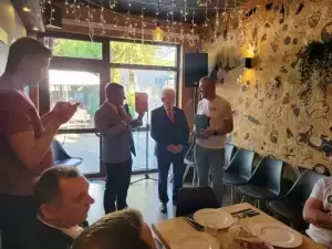 - Serdecznie gratuluję w imieniu całej Rady Miejskiej i społeczności gminnej – zwrócił się do członków Klubu Jerzy Kryciński, przewodniczący Rady Miejskiej. – Jesteśmy po to, aby Was wspierać, słuchać, pomagać. Podziękowania i gratulacje przede wszystkim dla zawodników za ten oczekiwany sukces po ponad dekadzie. Trenerowi gratuluję mentalnego ukształtowania całej drużyny i motywowania do tego awansu – dodał Jerzy Kryciński. Radę Miejską na spotkaniu reprezentowali także radny Arkadiusz Hibner oraz radny Paweł Rosenbeiger, którzy przed laty grali w grupach młodzieżowych MLKS Polonia.