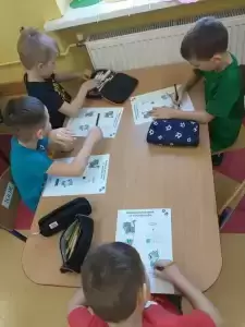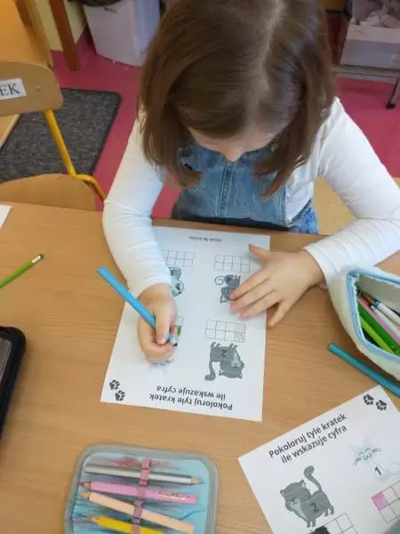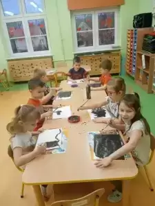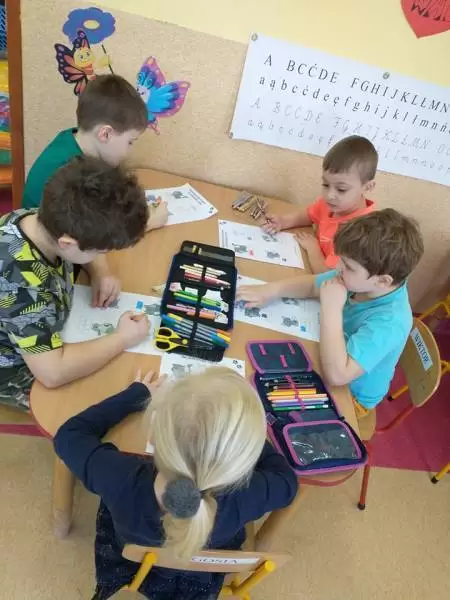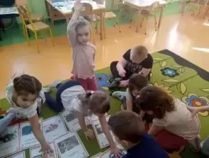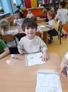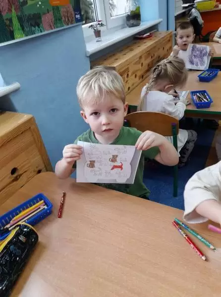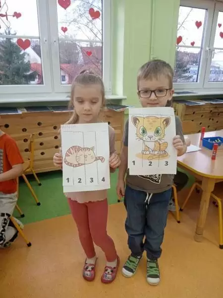 Były też wesołe „kocie zabawy”, takie jak: koci spacerek, rozwiązywanie zagadek, wykonywanie różnorodnych prac plastycznych, recytowanie wierszy i śpiewanie kocich piosenek.