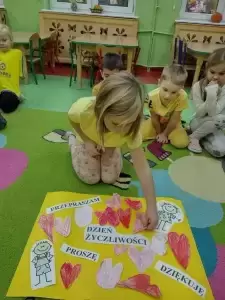 W poniedziałek 21 listopada wszystkie dzieci z naszego przedszkola obchodziły Światowy Dzień Życzliwości i Pozdrowień. Był to dzień pełen uśmiechów, dobrych uczynków, miłych słów oraz pozytywnych emocji. W tym dniu dzieci były przygotowane wzorowo, aby uczcić tak szczególne wydarzenie. Miały na sobie ubrania w kolorze żółtym, a także różne gadżety. Nauczycielki w swoich grupach przybliżyły dzieciom historię dnia życzliwości, omawiając przy tym jakie cechy powinna posiadać osoba życzliwa.