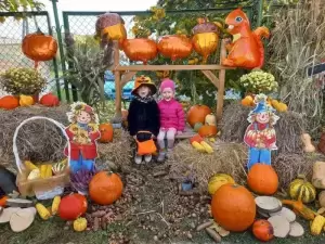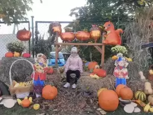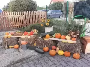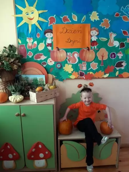 Tego dnia przynieśliśmy do przedszkola dynie i ubraliśmy się na kolor pomarańczowy. Wspólnie z rodzicami stworzyliśmy wyjątkową przestrzeń – „ DYNIOWĄ FARMĘ”. Miejsce pełne tematycznych rekwizytów oraz wiejskiej scenerii. Podczas Święta Dyni były tańce i zabawa, a także dyniowe zawody. Niemałą atrakcją okazała się też foto-ścianka, na której uwieczniony został ten super dzień.