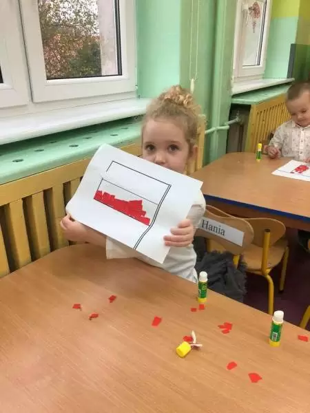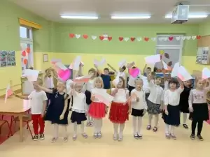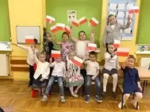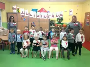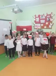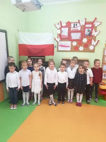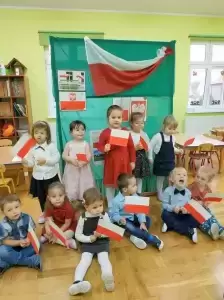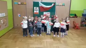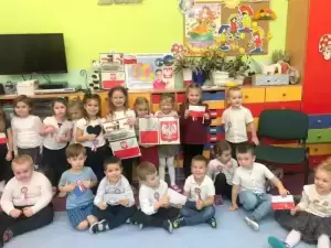 Dzieci tego dnia przyszły do przedszkola ubrane na galowo. Wszyscy obecni na uroczystości dumnie odśpiewali hymn Polski ,,MazurkaDąbrowskiego”.