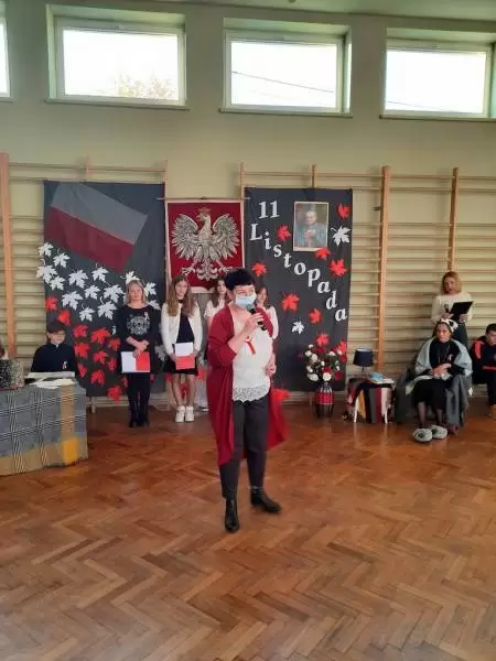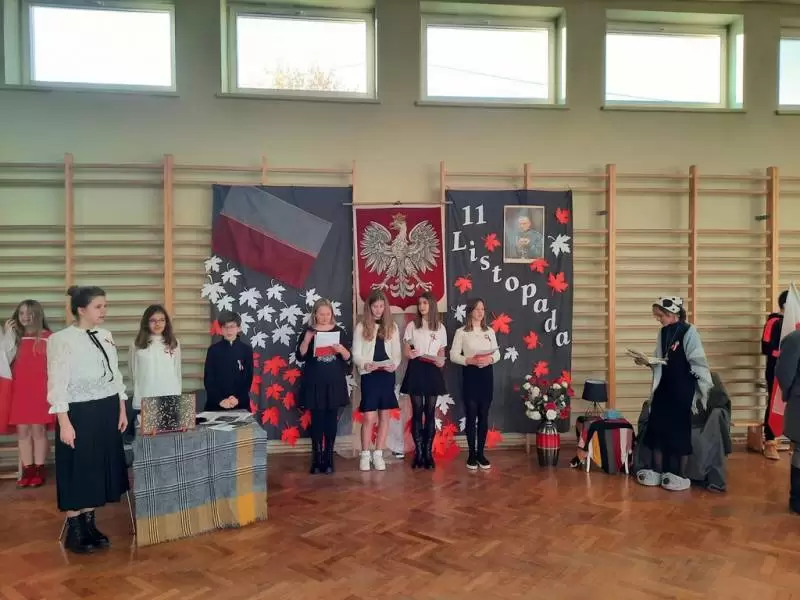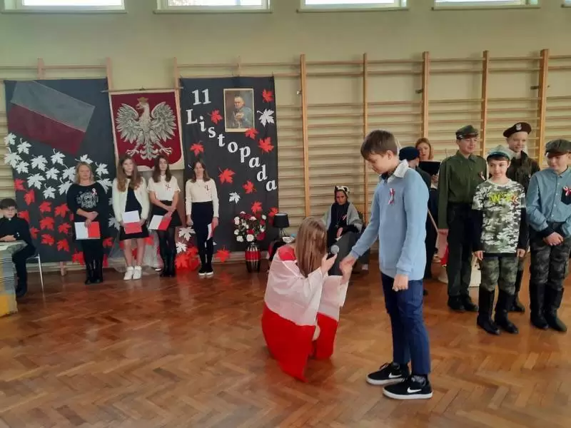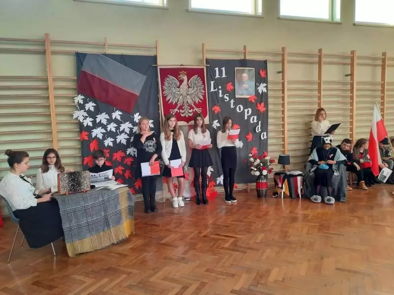 Stacjonujące przy ul. Kościuszki klasy siódme i ósme oraz klasa 6c wzięły udział w związanym tematycznie ze Świętem Odzyskania Niepodległości konkursie, który składał się z pięciu konkurencji. Każda klasa miała za zadanie: zrobić w swojej sali gazetkę poświęconą odzyskaniu przez Polskę niepodległości, ułożyć z puzzli w określonym czasie mapę II Rzeczpospolitej, pokolorować godło Polski, odgadnąć na podstawie zdjęć imiona i nazwiska sławnych Polaków z tego okresu oraz rozwiązać krzyżówkę. Zdobyte przez klasy punkty stały się podstawą do zdobycia określonych miejsc. Konkurs prowadzili oraz oceniali członkowie szkolnego koła historycznego, prowadzonego przez głównego organizatora tego konkursu, p. Alicję Przesławską. Zwycięskie klasy otrzymały pamiątkowe dyplomy.