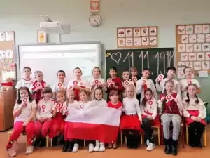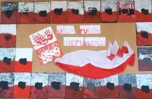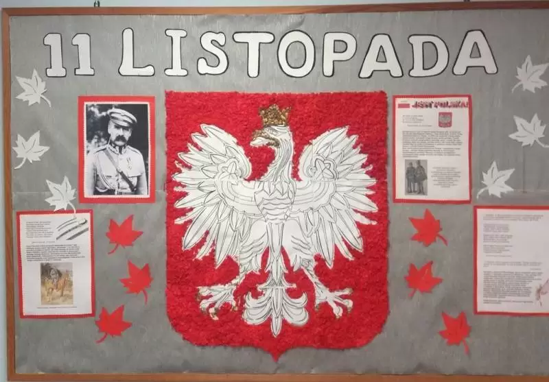 Uczniowie wykonali też wiele ciekawych prac plastycznych, które ozdobiły sale lekcyjne i szkolne korytarze. W ramach zajęć świetlicowych dzieci wraz z wychowawczyniami zrobiły gazetkę szkolną poświęconą Dniu Niepodległości. Starannie wyklejone godło Polski dumnie ozdobiło świetlicową gazetkę ścienną. Różnorodność zaoferowanych działań sprawiła, że wszyscy uczniowie „Trójki” - od tych najmłodszych po najstarszych – mogli znaleźć najatrakcyjniejszą dla siebie formę obchodów Święta Niepodległości i bez wątpienia data 11 Listopada wryła im się mocno w pamięć.