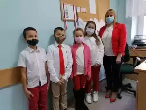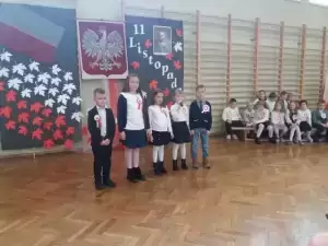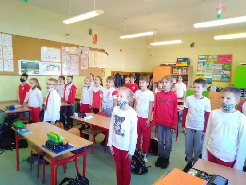Odbyły się dwa uroczyste apele szkolne, w których ze względów bezpieczeństwa w związku z epidemią COVID - 19 uczestniczyły klasy w małych grupach. Rozsadzeni w osobnych sektorach uczniowie klas I – III obejrzeli apel przygotowany przez klasy 1e i 2b, które do występu przygotowały panie Barbara Glazer i Małgorzata Musiał. Przedstawienie słowno-muzyczne dla uczniów klas IV-VI przygotowały nauczycielki – p. Katarzyna Szybiak i p. Marzena Marcinkowska przy współpracy z p. Adamem Gackiem akompaniującym podczas wykonywania pieśni patriotycznych, których uczniowie nauczyli się w czasie zajęć muzycznych z p. Maciejem Lenckowskim. W przedstawieniu wzięli udział uczniowie klas 6a i 6b: Lena Owczarska, Sara Czajkowska, Natalia Kuzio, Oliver Zieliński, Hanna Żemojcin, Kinga Mołczan, Emilia Sznajder, Tymon Gleń, Bartosz Kasprzyk, Natalia Krzyształowicz, Aleksandra Pająk, Sławomir Masełek, Mateusz Wrzyszcz, Bartłomiej Suszycki, Bartłomiej Rutkowski, Ksawery Lizak, Hanna Suszycka, Katarzyna Rubin, Marcel Korman.