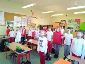 W ramach obchodów Święta Niepodległości 10 listopada uczniowie wzięli też czynny udział w akcjach ogłoszonych przez Samorząd Uczniowski: “#Szkoła do hymnu” i “Dzień biało-czerwony”. O godzinie 11.11. uroczyście odśpiewano “Mazurka Dąbrowskiego”. Ze względu na zagrożenie epidemiczne uczniowie uczący się w budynku przy ulicy Górnej zaśpiewali w swoich salach lekcyjnych. Przy ulicy Kościuszki akcja “#Szkoła do hymnu” rozegrała się przed budynkiem szkoły. Większość uczniów przyszła ubrana na biało-czerwono, podkreślając w ten sposób swój szacunek do barw narodowych. W ostatnim tygodniu we wszystkich klasach w trakcie zajęć poruszana była tematyka dotycząca symboli narodowych oraz odzyskania przez naszą Ojczyznę niepodległości.