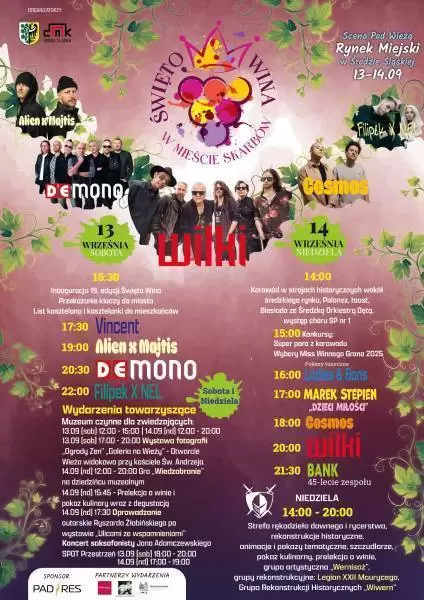 Święto Wina w Mieście Skarbów 2025 – zapraszamy na weekend pełen atrakcji w Środzie Śląskiej!