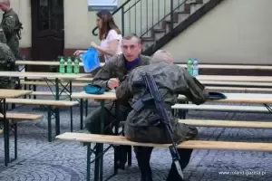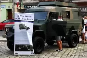 Po południu na rynku dolnym zaparkowały wojskowe pojazdy. Tam uroczystość zapoczątkował pokaz sprzętu wojskowego oraz okolicznościowa akademia z udziałem grupy rekonstrukcyjnej. Największe zainteresowanie bojowymi wozami wykazały dzieci, które chętnie zasiadały w pojazdach i zdawały mnóstwo pytań.