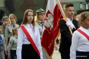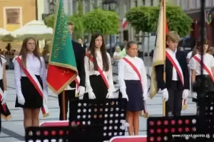 Część oficjalną rozpoczęto od odśpiewania hymnu, podczas którego na maszt wciągnięto flagę Polski.