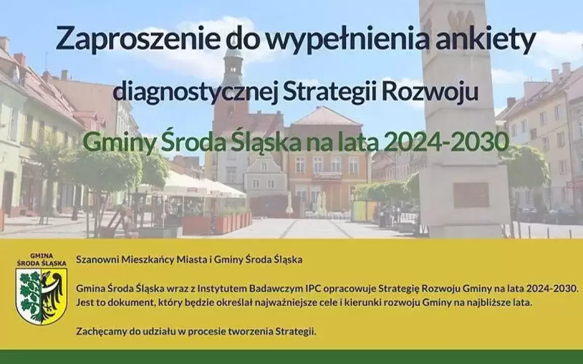 Gmina Środa Śląska wraz z Instytutem Badawczym IPC opracowuje Strategię Rozwoju Gminy na lata 2024-2030. Jest to dokument, który będzie określał najważniejsze cele i kierunki rozwoju Gminy na najbliższe lata.
