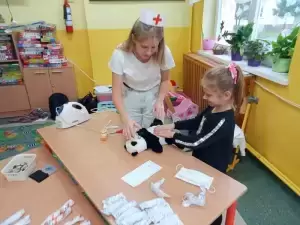 W tym dniu świetlica szkolna zamieniła się w Szpital Pluszowego Misia, w którym najlepsze lekarki w powiecie przyjmowały wyjątkowych pacjentów.