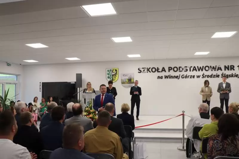 - Taka chwila zdarza się raz na kilkadziesiąt lat. Mamy okazję i jesteśmy dumni otwierać coś co jest przełomem w edukacji, w infrastrukturze edukacyjnej naszego miasta, naszej Gminy. To dzieło, ta szkoła na Winnej Górze była bardzo oczekiwana przez społeczność i dzisiaj to staje się faktem, te nasze wspólne oczekiwania i marzenia stają się faktem. Jako Burmistrz Środy Śląskiej jestem bardzo dumny, że mogę dzisiaj tutaj stać i przemawiać jako jeden z pierwszych bo to, ze zdarzyło się to w tej kadencji samorządowej 2018-2024 to nasz wspólny ogromny sukces – dodaje burmistrz Adam Ruciński.