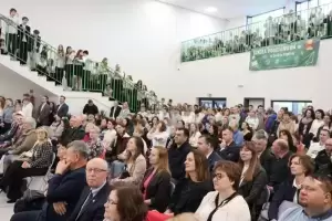 Na początku uroczystości uczniowie zatańczyli i zaśpiewali witając wszystkich zgromadzonych gości. Następnie wspólnie odśpiewano hymn narodowy.