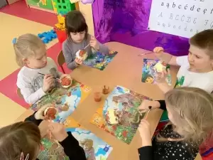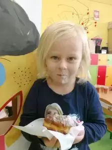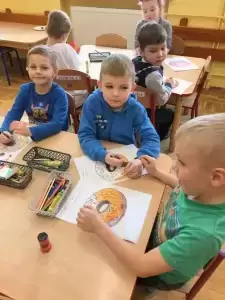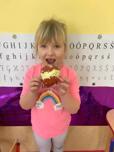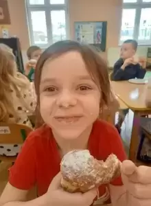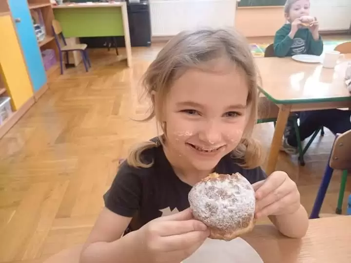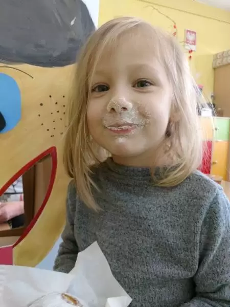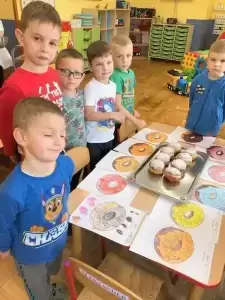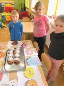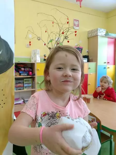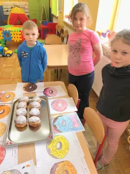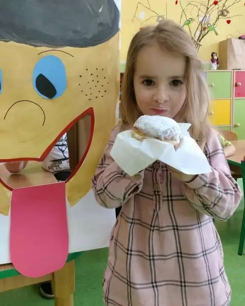 W tym słodkim i przepełnionym uśmiechem dniu dzieci dowiedziały się w jaki sposób przebiega proces pieczenia pączków, wykonały prace plastyczne związane z tematem przewodnim dnia, rozwiązywały zadania i łamigłówki, na koniec same miały możliwość skosztowania tego o czym dowiedziały się podczas zajęć.