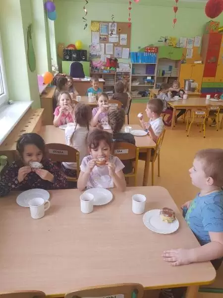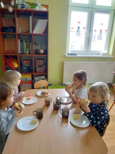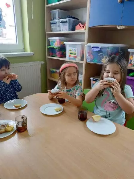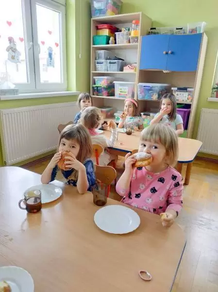 11 lutego dzieci z Przedszkola Publicznego nr 1 w Środzie Śląskiej świętowały "dzień pączka" w tak zwany Tłusty Czwartek.