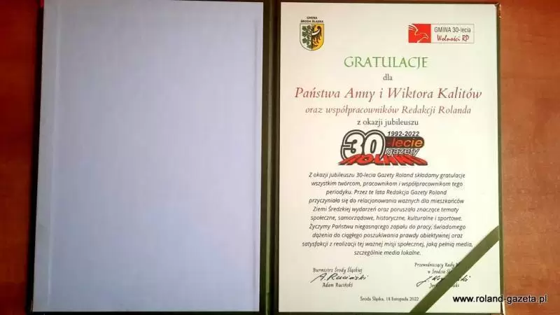 Historię powstania gazety przybliżył jej redaktor naczelny. Co ciekawe, zdradził, że tytuł początkowo był pozycją reklamową, w której miejsce wykupywali sobie właściciele sklepów i firm z miasta i okolic. Z kolei nazwa - i tu raczej zaskoczenia nie ma - wzięła się od stojącego na rynku pomnika rycerza Rolanda. - Rycerz to historia, a historia to trwałość. Chciałem, żeby z tym kojarzyła się gazeta, a także ze Środą Śląską właśnie - wyjaśniał Wiktor Kalita. Stroną graficzną wydania zajęła się Anna Kalita.