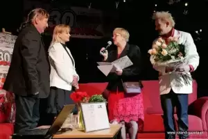 Po części wspominkowej nadszedł raz jeszcze czas na życzenia, a także słodki poczęstunek. O oprawę muzyczną wydarzenia zadbali: Paweł Wenderski z zespołem, Piotr Rejda i “Mocne Lajty” oraz Patryk Kalita i Tobiasz Marzyński. - Bardzo dziękujemy ekipie Centrum Kultury Alternatywnej, na czele z panią dyrektor Anną Klimczuk-Malczewską za gościnność i trud organizacyjny. Powiatowi Średzkiemu i jego wydziałowi promocji na czele z kierownikiem Marcinem Brzezińskim za nieoceniony wkład w przygotowanie jubileuszu oraz niezastąpionemu prowadzącemu Andrzejowi Bielskiemu za ogromne zaangażowanie i wsparcie. Pięknie dziękujemy również wspaniałym artystom, samorządowcom oraz wszystkim osobom, które wzięły udział w tym wydarzeniu, a przede wszystkim byłym i obecnym współpracownikom, wspaniałym ludziom, na których zawsze możemy liczyć! Trudno wyrazić w kilku słowach, jakie znaczenie ma dla nas Wasze wsparcie i zaangażowanie. Dziękujemy za wspaniałe przyjęcie, miłe słowa, gratulacje i prezenty - podsumowali jubilaci.