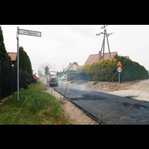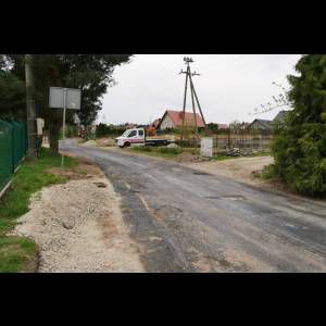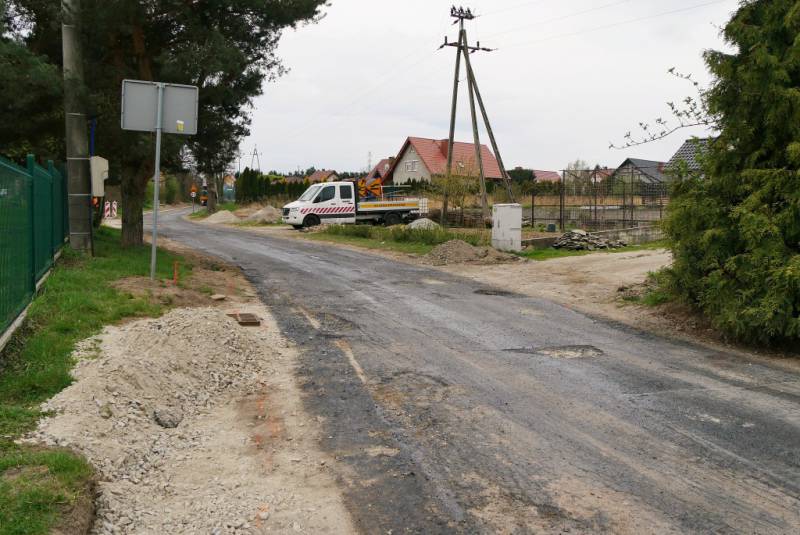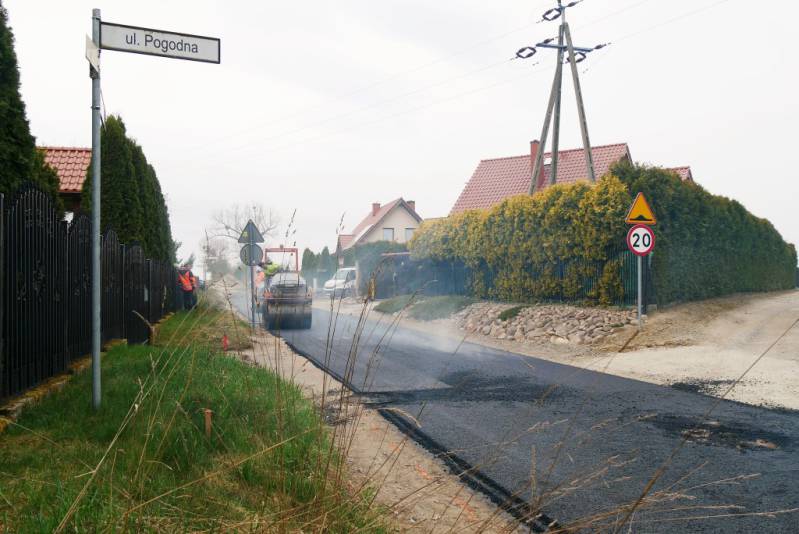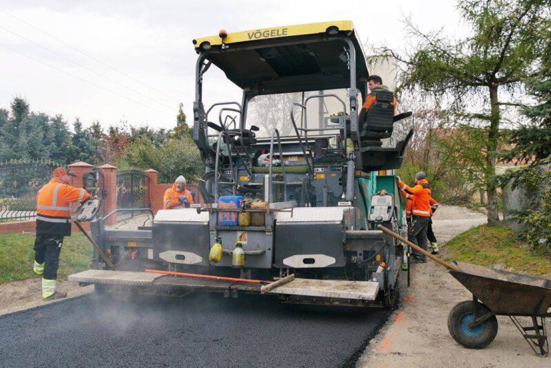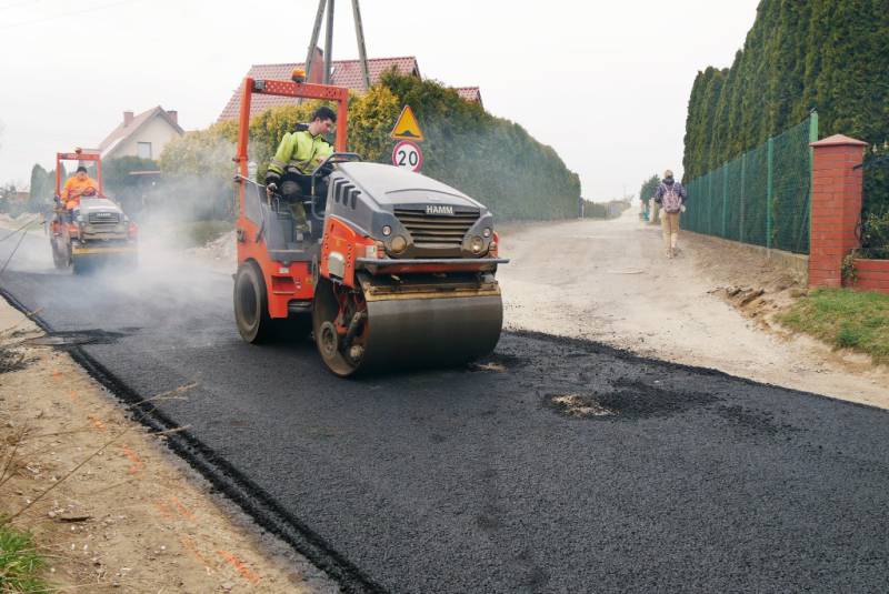 Dziś na placu budowy ułożono nakładkę asfaltową na wcześniej przygotowanej i oczyszczonej nawierzchni. W kolejnym etapie powstaną zjazdy na posesje oraz pobocza z kruszywa.