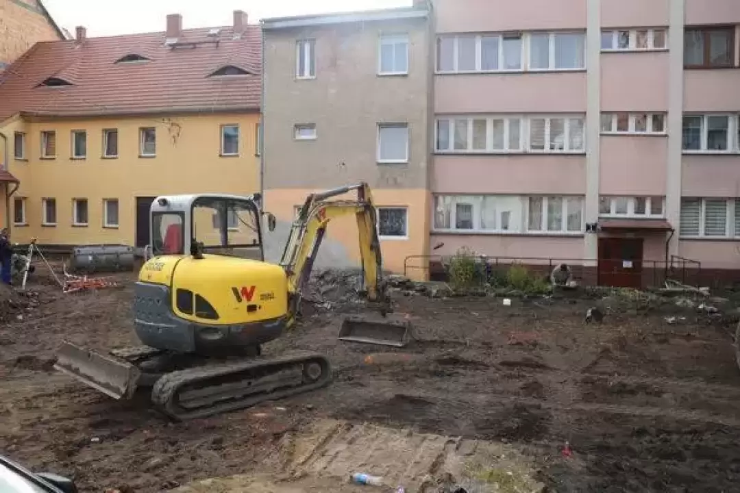 Kilka dni temu rozpoczęły się prace rozbiórkowe i ziemne w podwórku przy ul. Kolejowej 4-10 i ul. Daszyńskiego 1-3 w Środzie Śląskiej. Teren zostanie uporządkowany, powstanie m.in. miejsce do rekreacji i chodniki do posesji.
