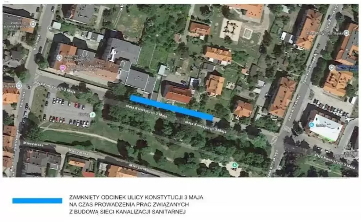 Spółka Średzka Woda informuje, że z powodu prac związanych z budową sieci kanalizacji sanitarnej w Środzie Śląskiej, na ulicy Konstytucji 3 Maja nastąpi tymczasowe zamknięcie części drogi.