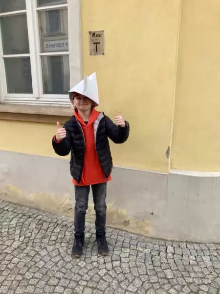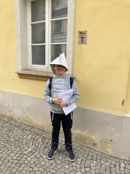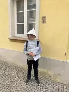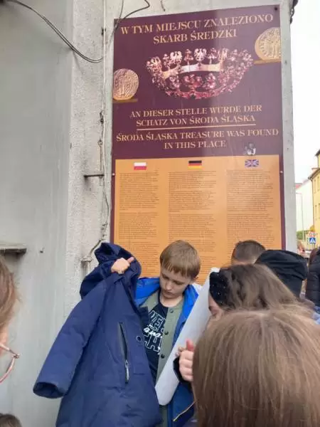 Wiadomości historyczne i część zadań przygotowała p. Anna Celuch pracownica Muzeum w Środzie Śl., za co serdecznie dziękujemy. Uczniowie spacerując po swoim mieście, przy ciekawych obiektach, mieli do wykonania interesujące zadania (zaśpiewać chorał, podzielić zegar na trzy równe części, wykonać czapkę Napoleona i zrobić w niej zdjęcie przed domem, w którym przebywał, czy odszukać daty ukryte na ścianach Ratusza).