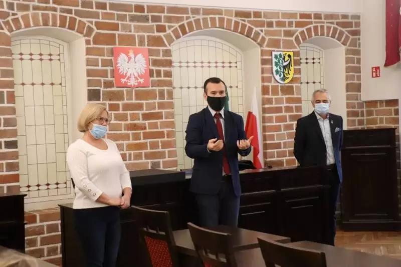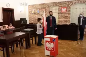 Młodych gości przywitał w sali sesyjnej Rady Miejskiej sekretarz Gminy Marcin Nowakowski, który opowiedział uczniom m.in. o pracy urzędu, przebiegu wyborów samorządowych oraz charakterystyce pracy samorządowca – burmistrza, radnego i pracownika administracji samorządowej.