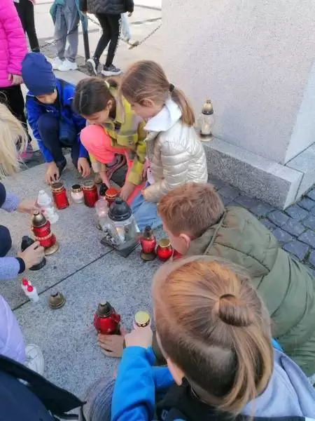 Przedstawiciele Samorządu Uczniowskiego oraz klas I - III Szkoły Podstawowej nr 3 w Środzie Śląskiej wybrali się w ramach "Dnia Pamięci o Poległych w Obronie Ojczyzny" na średzki rynek, pod Pomnik Żołnierzy Polskich.