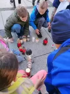 Dzieci minutą ciszy uczciły pamięć bohaterów, którzy oddali życie walcząc o wolność Polski oraz zapaliły białe i czerwone znicze. Ułożone przez uczniów serce jest wyrazem ich wdzięczności dla wszystkich, którzy zginęli, aby następne pokolenia Polaków mogły żyć w niepodległej Ojczyźnie.