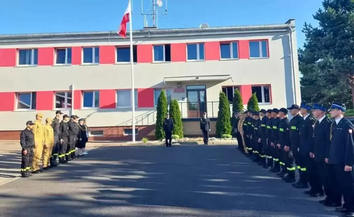 Dziś na placu przed wyremontowanym budynkiem Komendy Powiatowej Państwowej Straży Pożarnej w Środzie Śląskiej odbyła się uroczysta zbiórka z okazji ślubowania nowo przyjętego funkcjonariusza, który będzie pełnił służbę w Jednostce Ratowniczo-Gaśniczej.