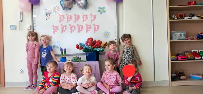 W tym szczególnym dniu wszystkie dziewczynki oraz panie pracujące w placówce usłyszały serdeczne życzenia i tradycyjne "100 lat". Nasi mali dżentelmeni z ogromnym zaangażowaniem dbali o swoje koleżanki, wręczając im własnoręcznie wykonane drobne upominki.