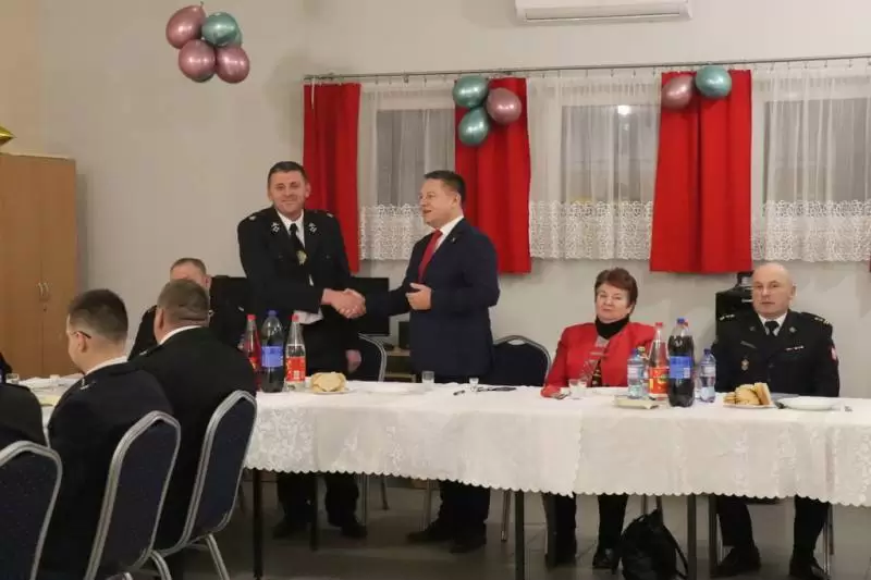 Ważnym elementem spotkania były podziękowania dla sponsorów, których wsparcie okazało się niezmiernie istotne w celu zakupu nowego wozu bojowego Volvo FL. Prezes OSP podziękował Burmistrzowi Adamowi Rucińskiemu za ponad 400 tys. zł dotacji z budżetu Gminy Środa Śląska.