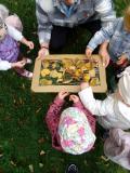 Poniedziałek przywitał nas pięknym słoneczkiem, więc wyruszyliśmy w poszukiwaniu złotej jesieni. Dzieci zebrały cały kosz liści, żołędzi i jarzębiny, więc na kolejnych zajęciach zrobiliśmy z nich piękny jesienny obraz oraz sowę, którą maluchy nazwały Jarzębinka. Czas płynął nam bardzo szybko, każdy dzień przynosił z sobą ciekawą zabawę, która dawała naszym Diamencikom dużo radości i uśmiechu.