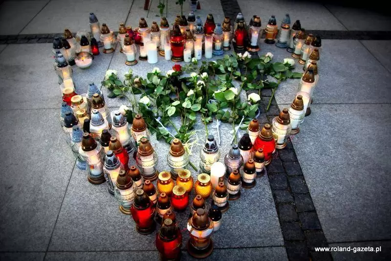 Przynieśli ze sobą portret tragicznie zmarłego, kwiaty i znicze, z których ułożyli serce.