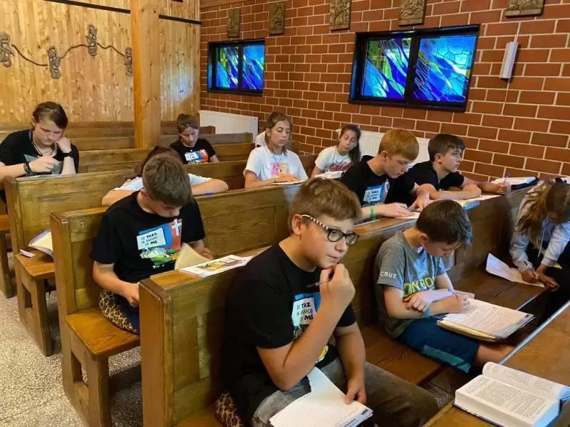 Tematem wyjazdu była najważniejsza dla wierzących UCZTA, czyli Eucharystia. To ten sakrament odkrywali młodzi ludzie, nie tylko uczestnicząc w nim, ale także poznając jego znaczenie. Zorganizowane warsztaty i konferencje pomagały im zbliżyć się do Boga, ale również do siebie nawzajem, a w planie dnia był czas zarówno na pracę w grupach, jak i na chwilę indywidualnej refleksji. Ponieważ obóz odbywał się w otoczeniu pięknej Kotliny Kłodzkiej, nie mogło zabraknąć oczywiście górskich wycieczek i innych form aktywnego wypoczynku. Co istotne, nawet odpoczywając np. na spływie kajakowym, wieczorze filmowym, czy zwiedzając Jaskinię Niedźwiedzią w Kletnie młodzież też uczyła się współpracy i integrowała między sobą. Warto podkreślić, że obozowy tydzień młodzież spędziła bez telefonów i mediów społecznościowych.