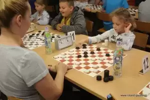 Najmłodsza kategoria wiekowa, w której wystąpiło osiem osób. Konkurencja była duża, do ostatniej rundy ważyły się losy zwycięstwa w tej grupie. Wygrał Igor Walkowiak posiadający ogromny talent na przyszłość, zgromadził 8 punktów. Tyle samo punktów uzbierał w końcowym efekcie Cyprian Borkowski, również ogromny talent z perspektywami na przyszłość, Cyprian przegrał z Igorem małymi punktami w wartościowaniu. Na najniższym stopniu podium stanęła Zuzanna Szlanta z dorobkiem sześciu punktów. Tuż za Zuzią była jeszcze trójka dzieci, które uzyskały po 6 punktów, miały nieco niższe wartościowanie. W tej kategorii widać jak bardzo poziom między zawodnikami jest wyrównany oraz widać jak na dłoni, że walka o trzecie miejsce była zacięta. Dwaj pierwsi chłopcy rywalizowali między sobą o pierwsze miejsce. Wspaniałe dzieci - jesteście przyszłością, rozwijajcie wciąż swe umiejętności gry w warcaby.