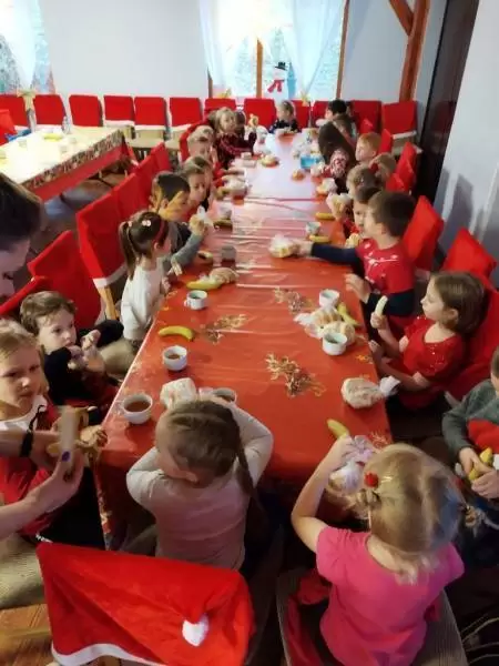 W przerwie dzieci popijały świąteczną herbatkę, a w tle słychać było świąteczne przeboje!