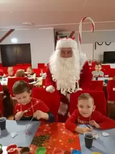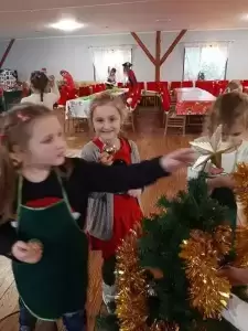 Dwie najstarsze grupy z Przedszkola w Ciechowie, wybrały się na wycieczkę w poszukiwaniu Mikołaja. Na miejscu przywitały nas Elfy, Renifery i oczywiście ON, niezastąpiony Mikołaj! Pięknie wystrojona sala, wszechobecna czerwień i świąteczna muzyka, od razu wprawiła nas w świąteczny nastrój.