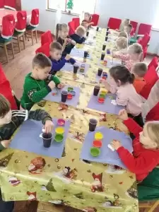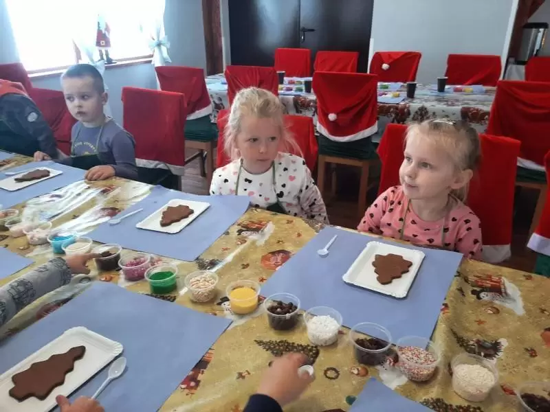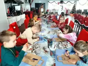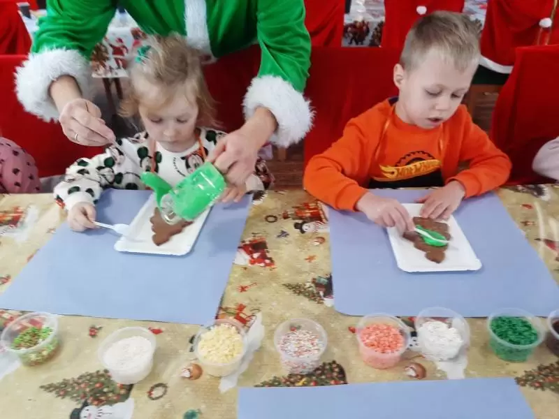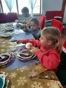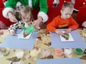 Podczas warsztatów dzieci pisały list do św. Mikołaja, zdobiły lukrem bożonarodzeniowe pierniki, ozdabiały brokatem świąteczne bombki oraz malowały farbami gipsowe ozdoby choinkowe. Pomysłów na dekoracje było bez liku. Wszystkie te wyjątkowe prezenty przedszkolaki zapakowały do ekologicznej świątecznej torebki - zaprojektowanej i wykonanej również własnoręcznie.